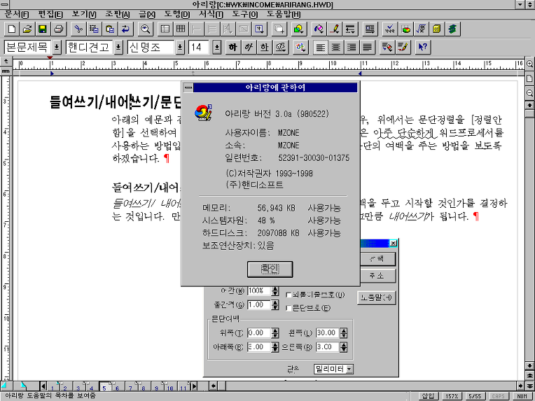 <군 생활 때 워드병 생활을 하면서 열심히 문서 작성했던 워드 프로그램인 아리랑 3.0 출처: http://blog.daum.net/_blog/BlogTypeView.do?blogid=06Txc&articleno=15813762&totalcnt=129> |